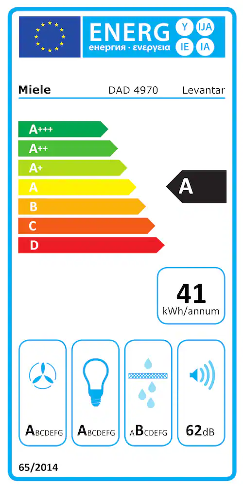 Système Downdraft 936 mm, Pour évacuation ou circuit fermé, Miele@home, 2 filtres à graisse métalliques, Lampes High-Power LED, 1 x 12 W, Evacuation selon EN, Ø 150 mm :, niveau 3 450 m3 / h 62 dB(A)re1pw, intensif 655 m3 / h 71 dB(A)re1pw, Energylabel : A