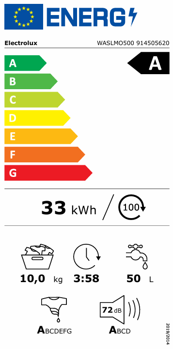 Lave-linge WASLMO500 édition spéciale ELECTROLUX volume utile 10 kg, 1600 t/min. 230 Volt, écran LED 12 programmes, Electrolux app tambour XL-Care, tour de lavage réalisable avec TWSLMO500 charnière à gauche Classe d´énergie A. HxLxP (mm) 850x600x660.
